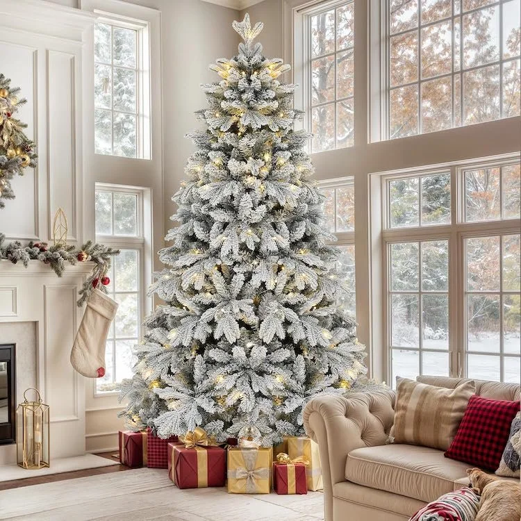 There’s just something about a snow-kissed tree that really embodies the spirit of the season and cold temps. This tree is a budget-friendly option that can be placed in your home with almost all of the decorating done for you!
