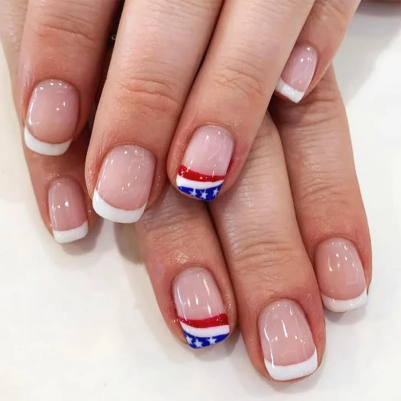 A fun way to incorporate a flag design into a French tip manicure.