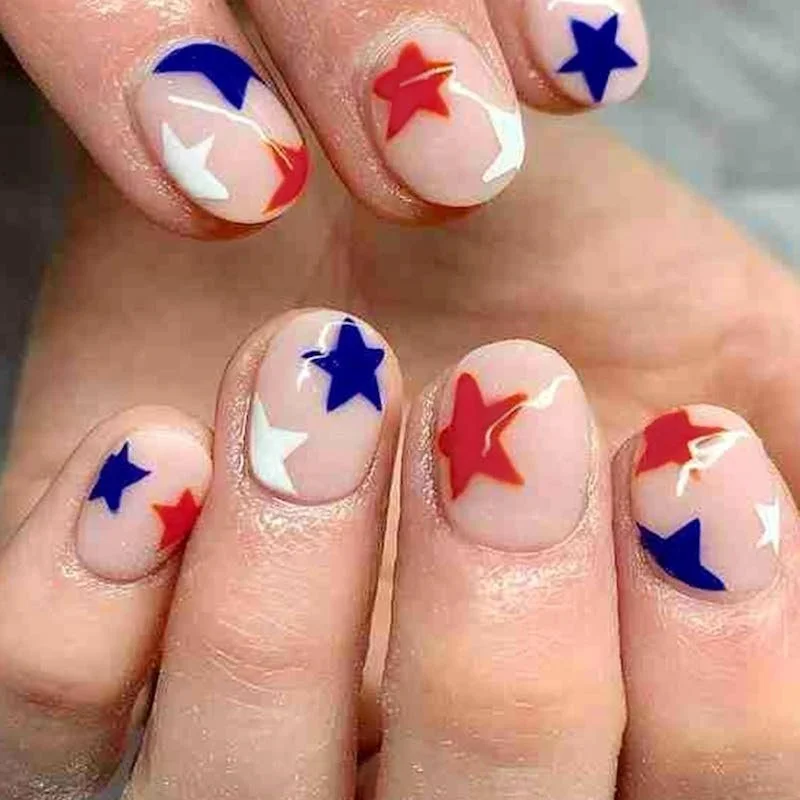 Red & Blue Stars Nails (Short Squoval)