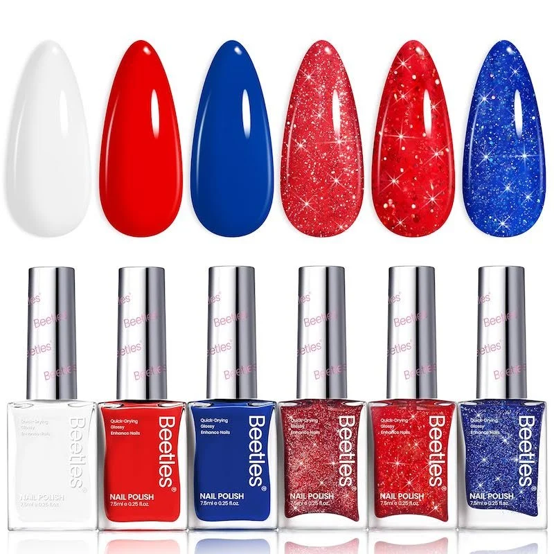 A 4th of July nail polish set with a little sparkle.