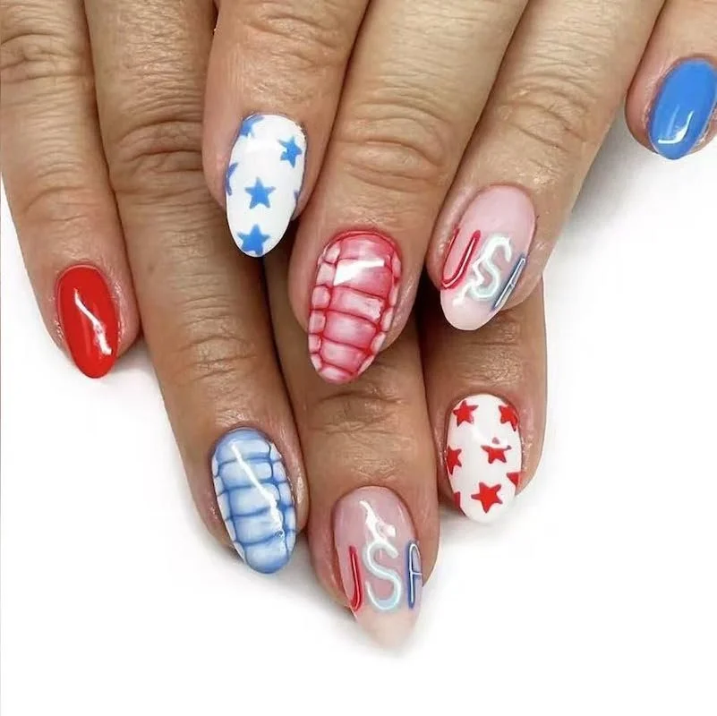 Matte Independence Day Nails (Medium Almond)