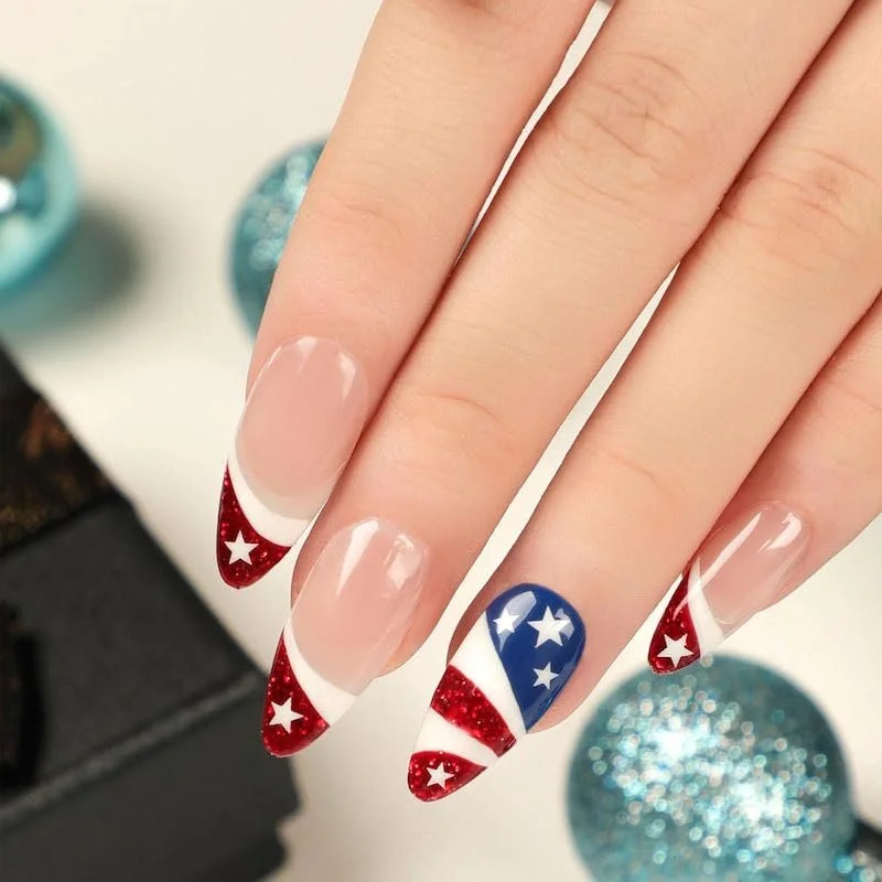 Patriotic French Tip Nails (Short Almond)