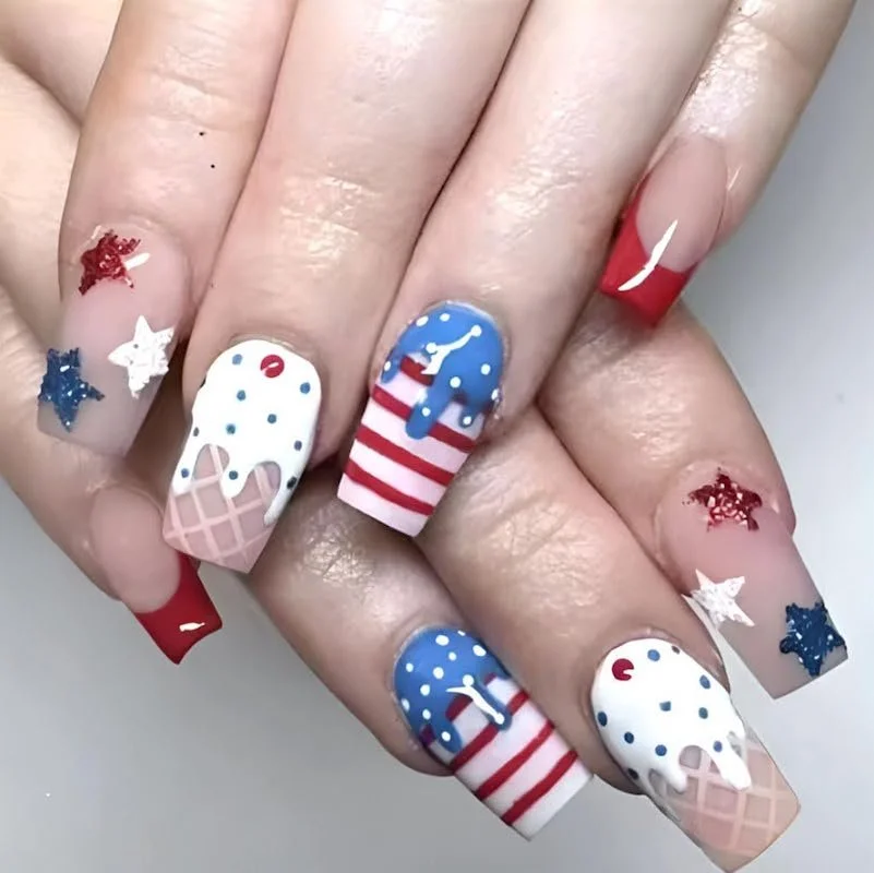 Independence Day Ice Cream Cone Nails (Medium Square)