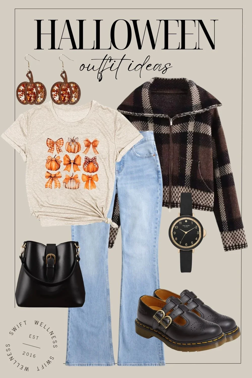 A graphic tee for Halloween is one of our favorite ways to incorporate a little holiday magic. Mix and match it with your favorite pieces, but a faux leather jacket and plaid skirt give it an almost punk-rock feel.