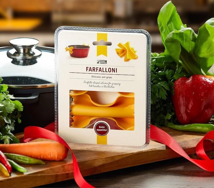 Perfect as a stocking stuffer or even as a White Elephant gift, these fun pot holders are shaped like delicious pasta—ideal as a silly gift for a chef!