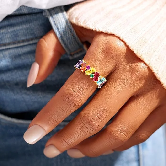 Buying yourself a nice piece of jewelry counts as self-care, right? This wide stackable ring adds a bold pop of color to your everyday jewelry.